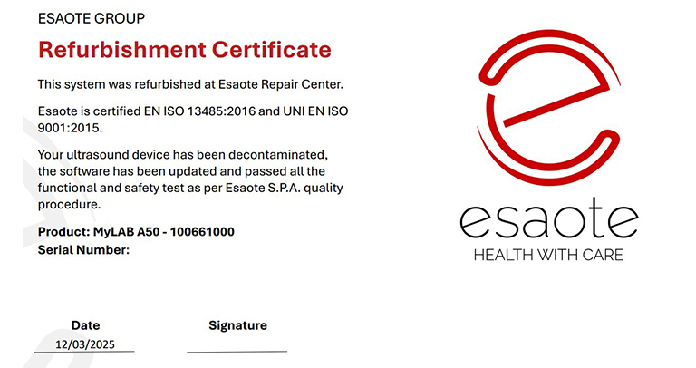 Discover refurbished ultrasound scanners for sale in the E‑shop: 100% guaranteed by Esaote for performance and reliability, ensuring the highest standards of performance and safety. For more than 40 years, Esaote has been assisting physicians in the diagnostic process by providing them with superior image quality and performance. Esaote’s refurbishment process, which includes restoring components and upgrading to the latest features, ensures that used equipment is restored to its optimal condition, with excellent image quality and advanced features.